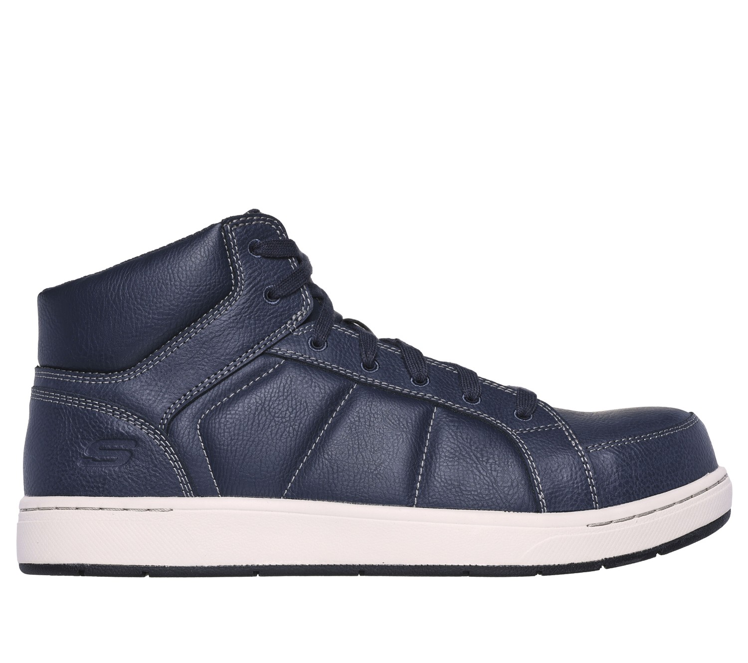 Lace-up utility design with a durable smooth leather and synthetic upper