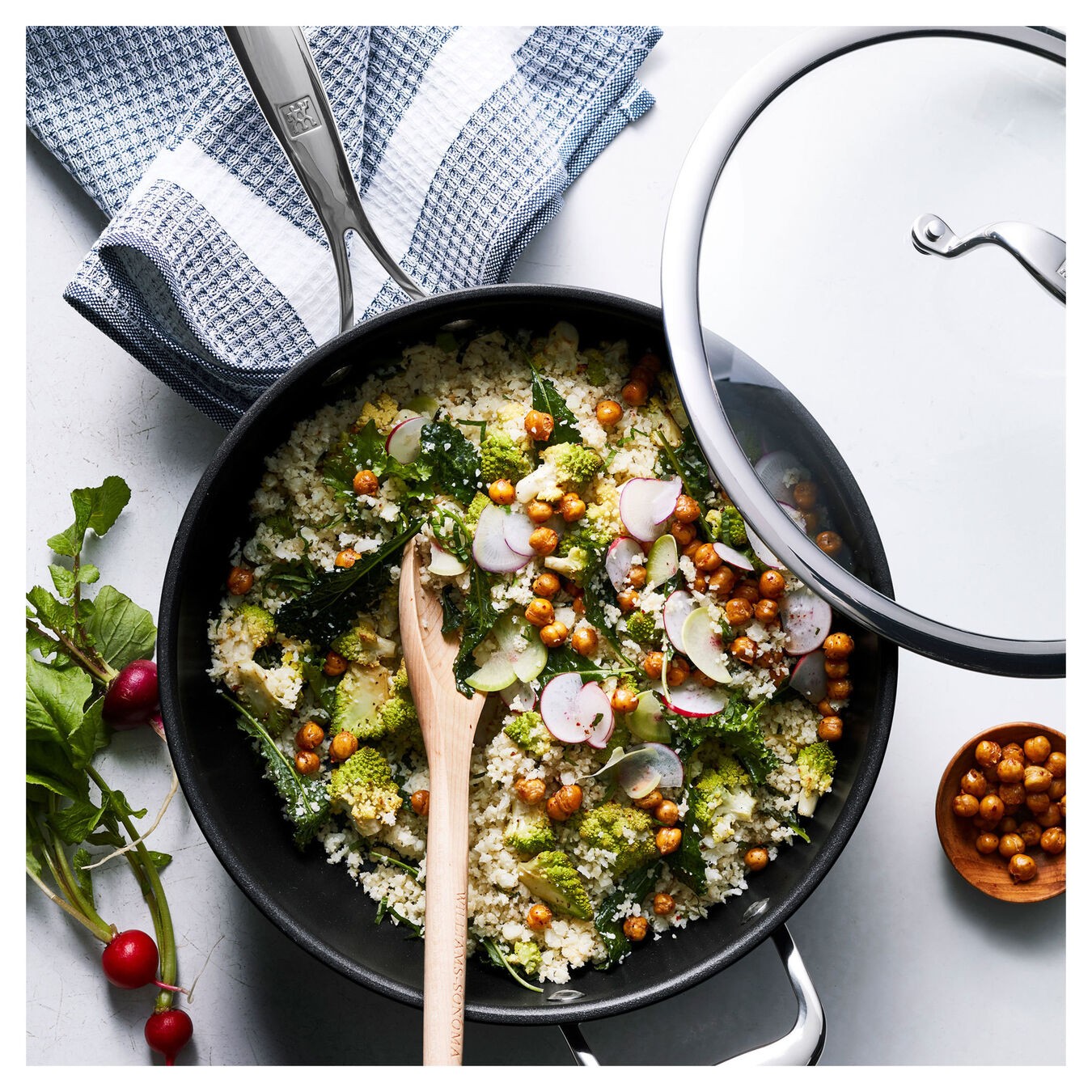 The cold forged extremely pure aluminum construction provides fast and even heat distribution, with no hot spots. The stay-cool, stainless-steel handle is comfortable to hold. The pans feature a handy hanging loop, you can store your cookware with ease. ZWILLING Forte is compatible with all stovetops, including induction, and is oven safe to 500°F. Durable and dishwasher-safe, the Ti-X coating lets you enjoy quick release and easy clean up any night of the week.