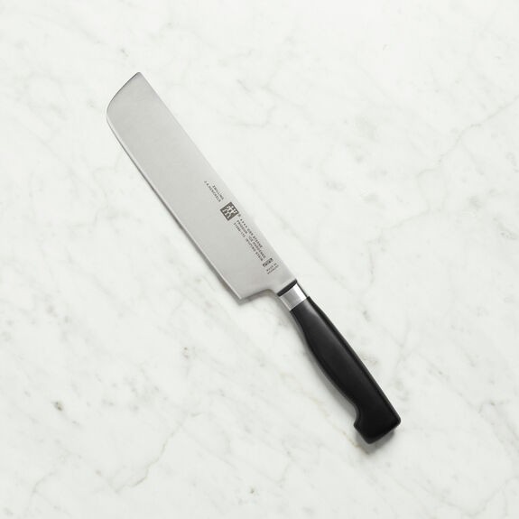 This finely crafted nakiri knife mimics a Japanese cleaver shape and features a wide, ultra-sharp blade that’s ideal for prepping everything from veggies to meat to fish. It’s a sturdy knife created for just about everything in the kitchen, but most especially for chopping, slicing, and dicing vegetables.