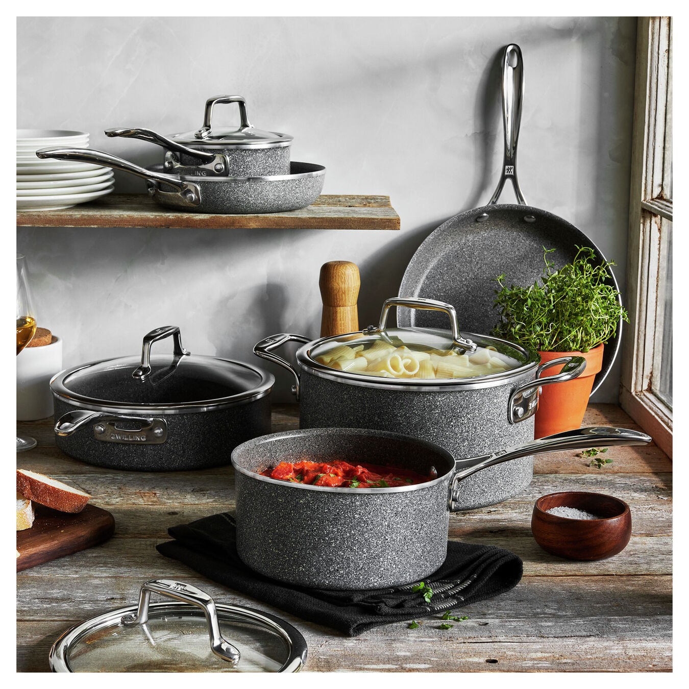 ZWILLING Vitale combines the best of Italian design with exceptional German engineering so you can enjoy high-performance, hassle-free cooking. This 10-piece set will set your kitchen up right. Make quick work of small jobs like melting butter and heating up soup in the 1-quart saucepan or toasting nuts in the 8-inch fry pan. And tackle larger tasks like sautéing vegetables and whipping up sauces in the 3-quart sauté pan or braising meat in the 6-quart Dutch oven. You can expect long-lasting use with this beautifully crafted, Italian-made cookware designed for everyday cooking.